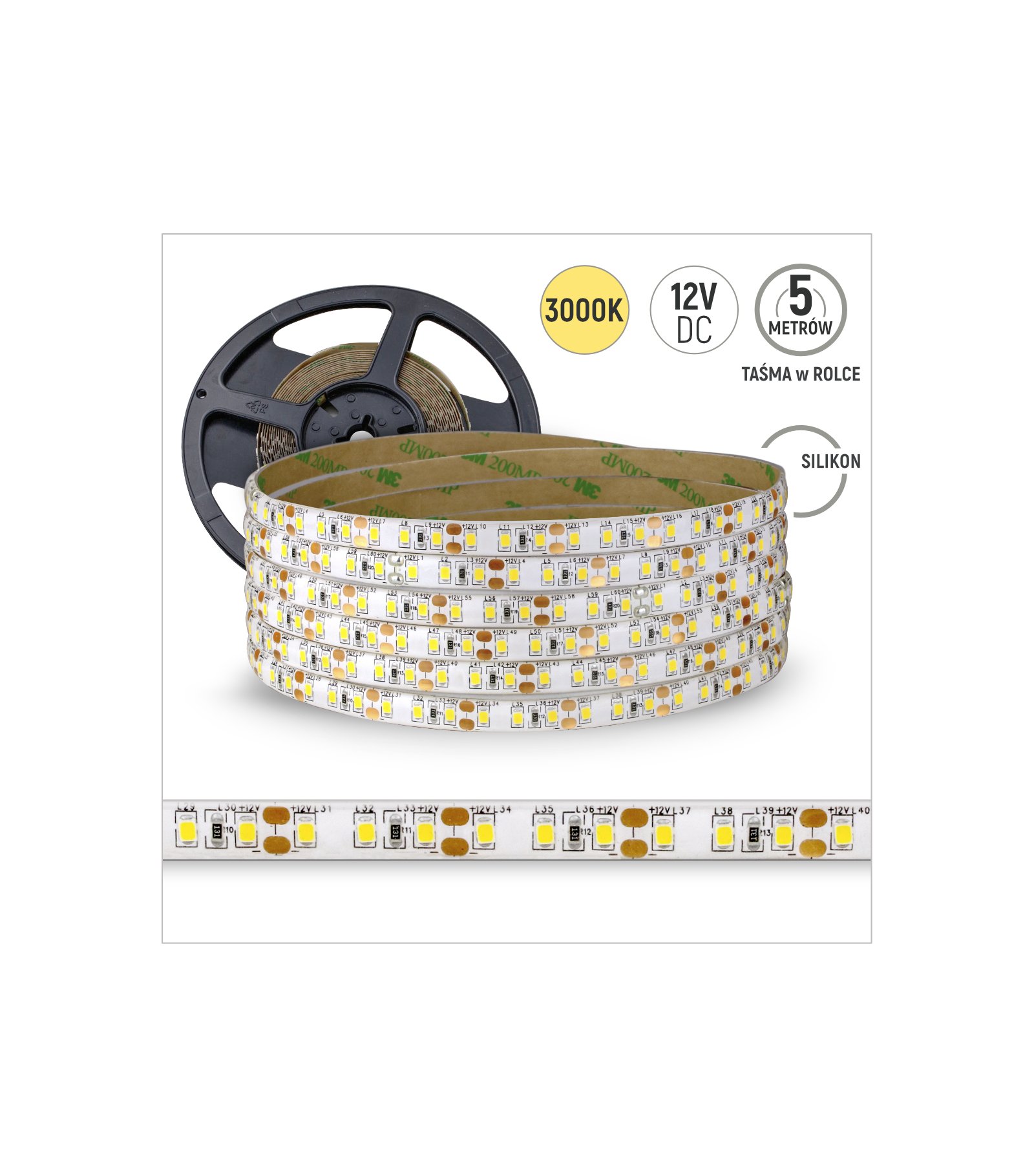 TAŚMA 120LED 2835 10-12lm 5mb. silik. ciepła 12W/mb 12V 3lat
