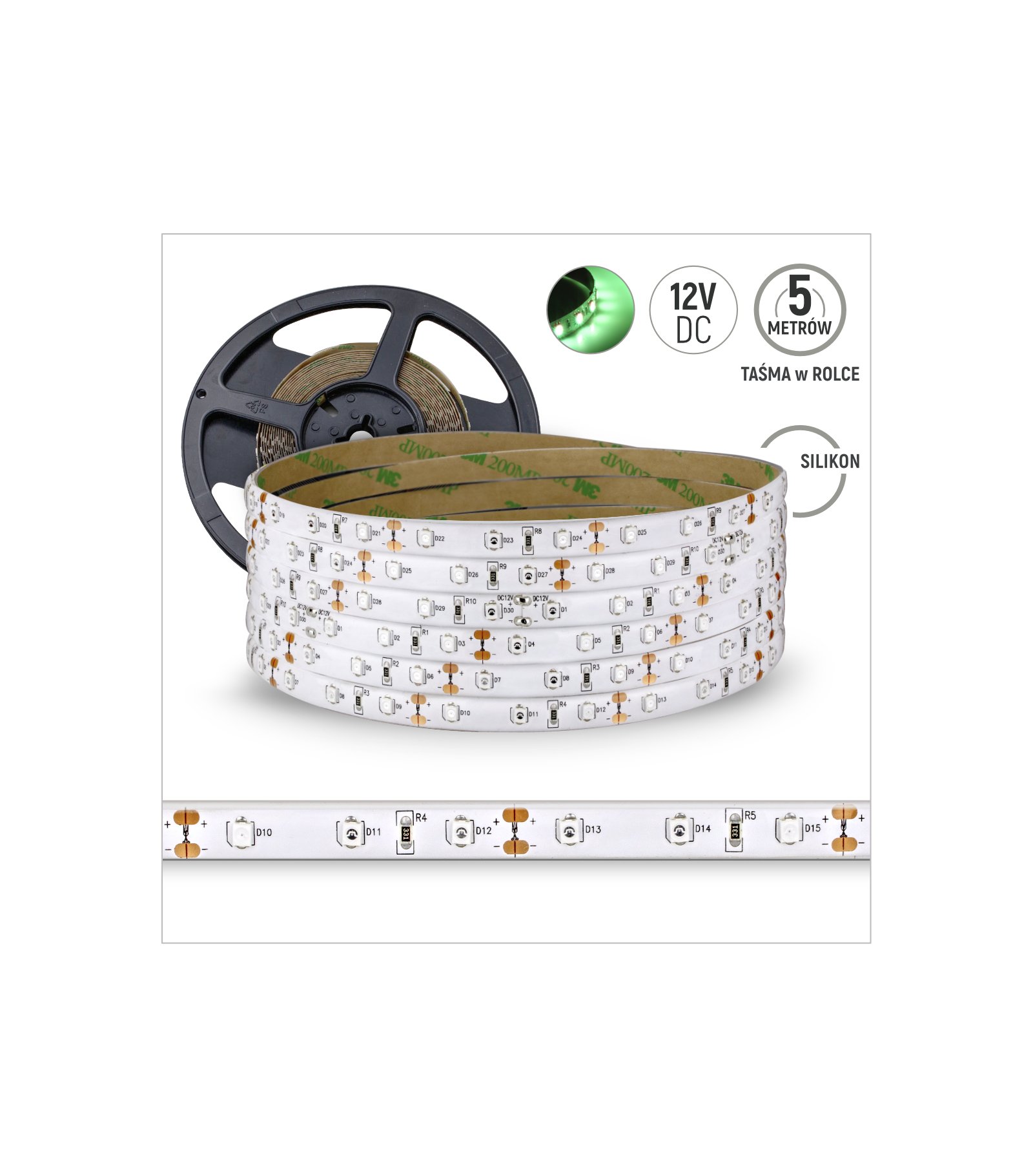 TAŚMA 60LED 3528 5mb 12V silik. zielona 4,8W/1mb 5mb ROLKA