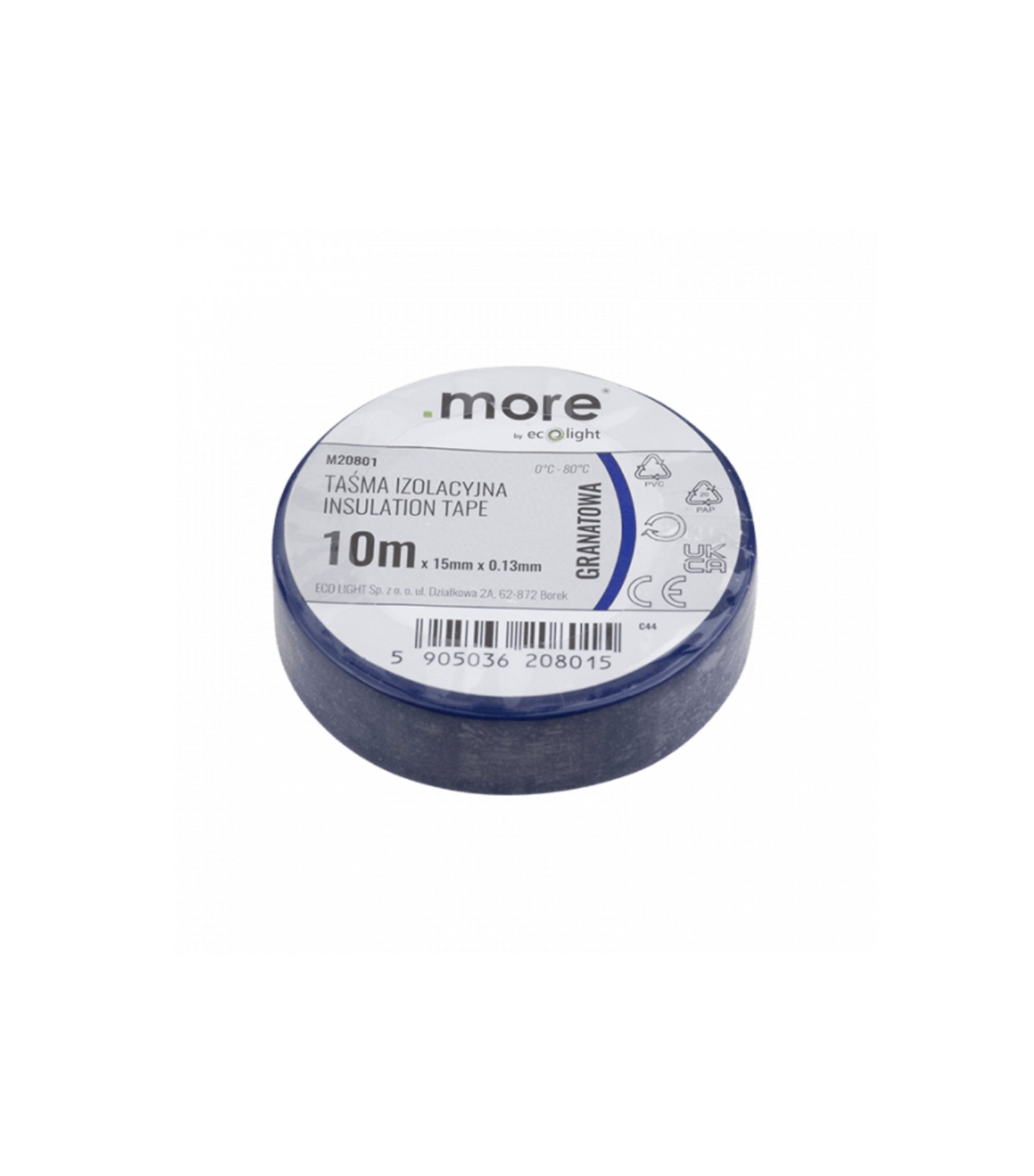 Wysoka jakość materiału gwarantuje skuteczną izolację i trwałość, a jej optymalna szerokość 15 mm pozwala na precyzyjne owinięcie nawet w trudno dostępnych miejscach. Taśma jest wyjątkowo cienka (0,13 mm), dzięki czemu nie zajmuje dużo miejsca i łatwo dopasowuje się do powierzchni.