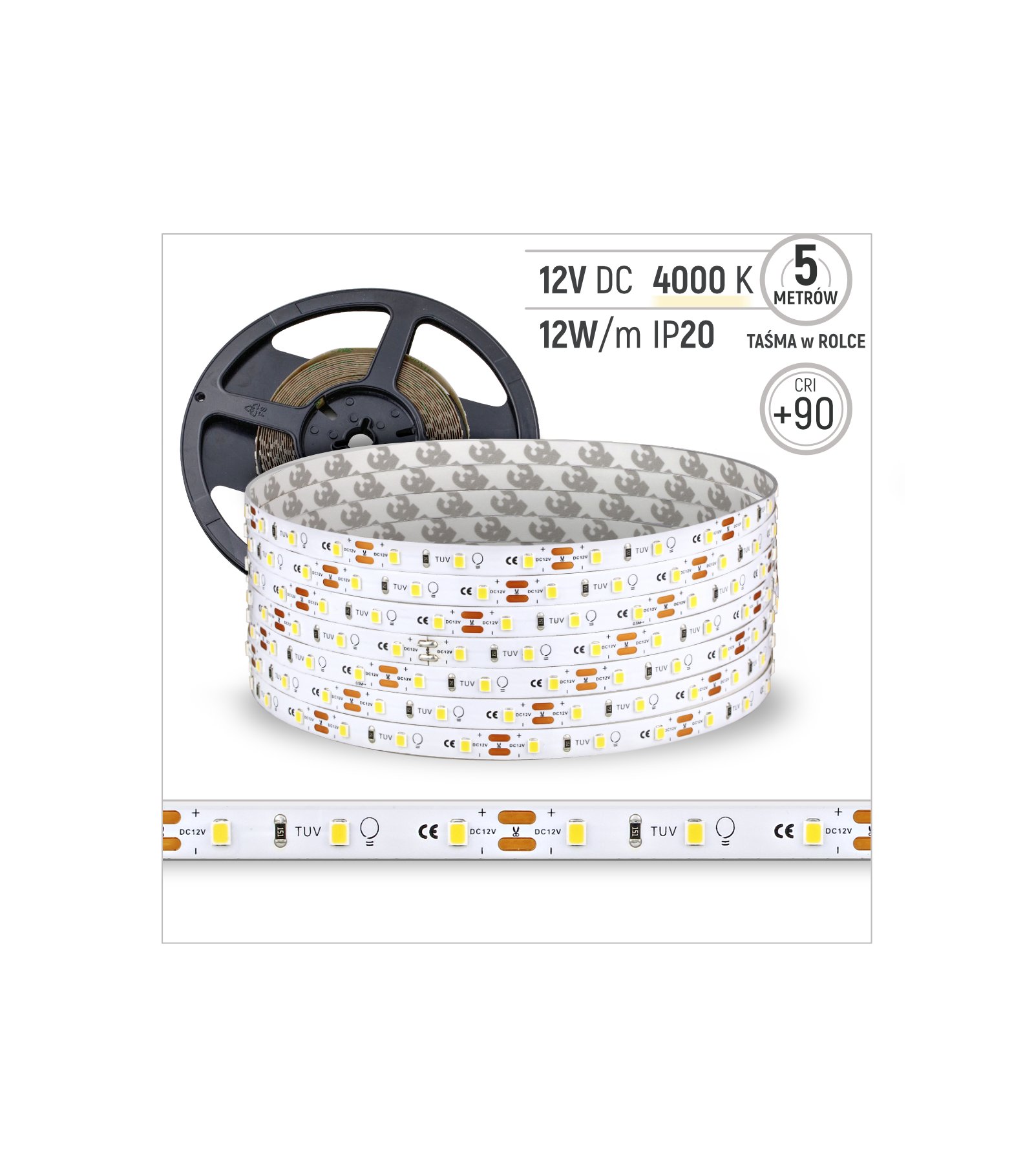 TAŚMA 60LED 12V/DC 2835 /5mb/ 4000K 12W/mb IP20 CRI90+ 3 lat