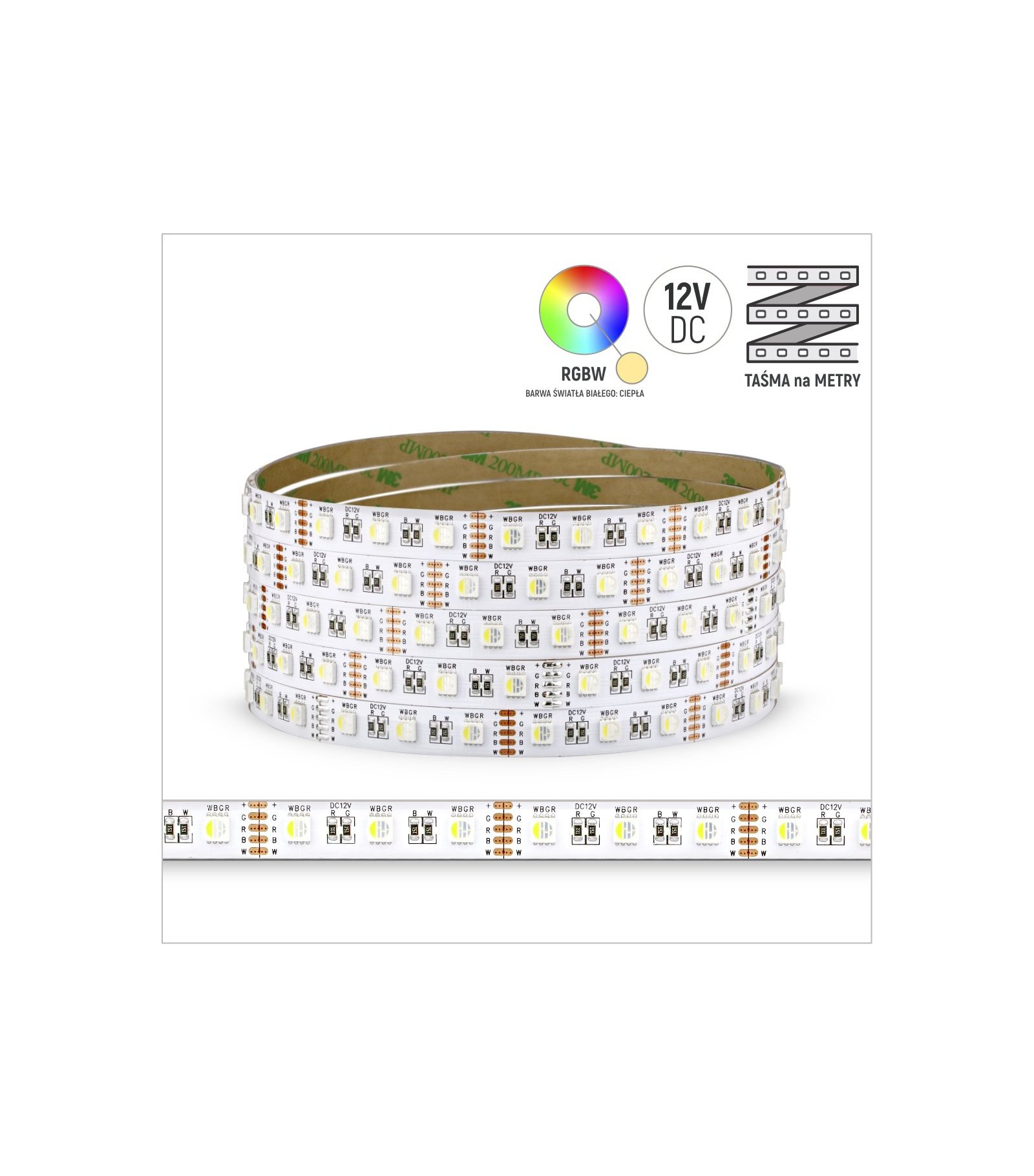 TAŚMA ROL. 60LED 5050 RGBW CIEPŁA BIAŁA 12V 18W/mb IP20 3 la