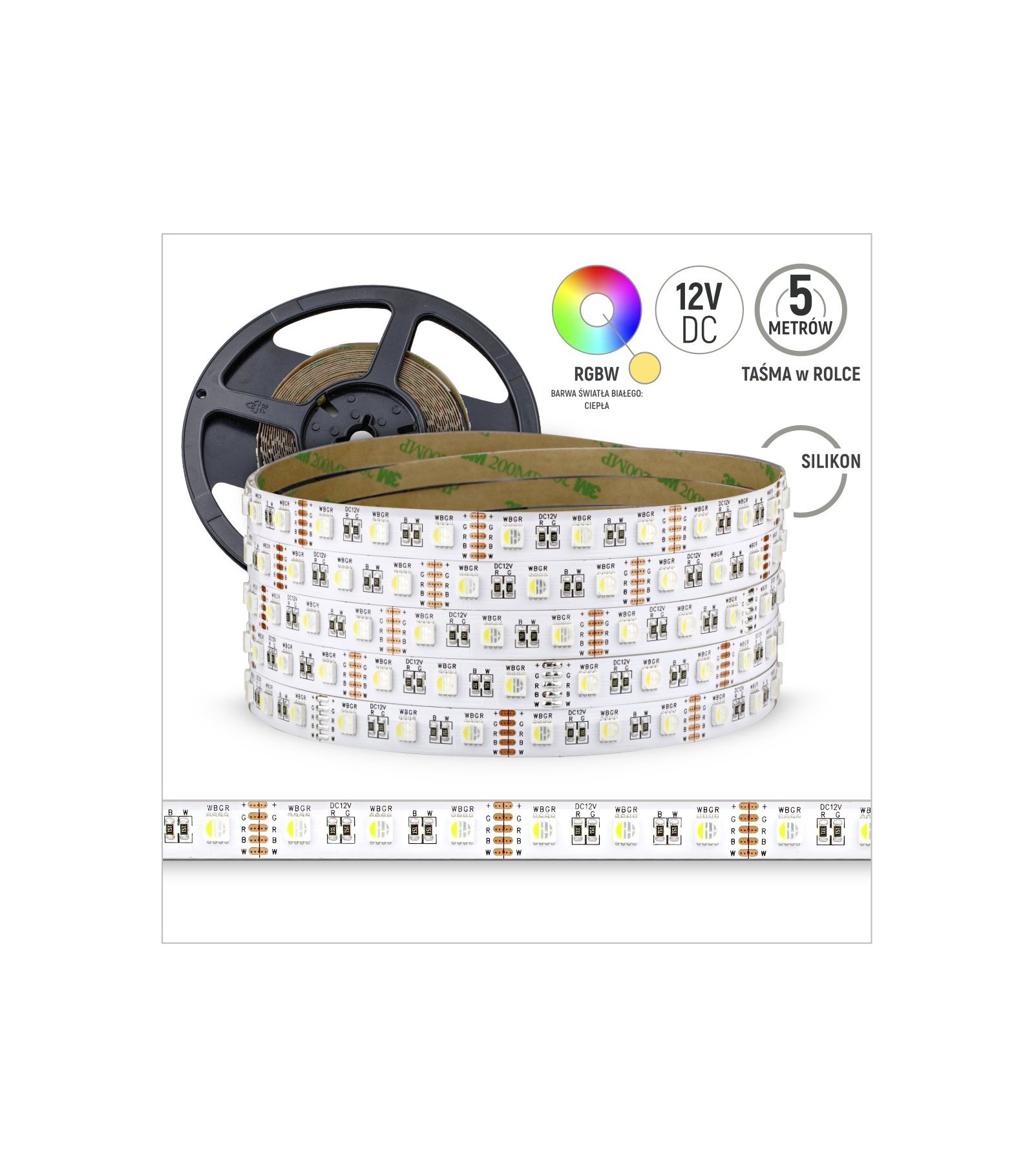 TAŚMA 60LED 5050 RGBW 5mb CIEPŁA BIAŁA 12V SILIK. 20LM 3 lat