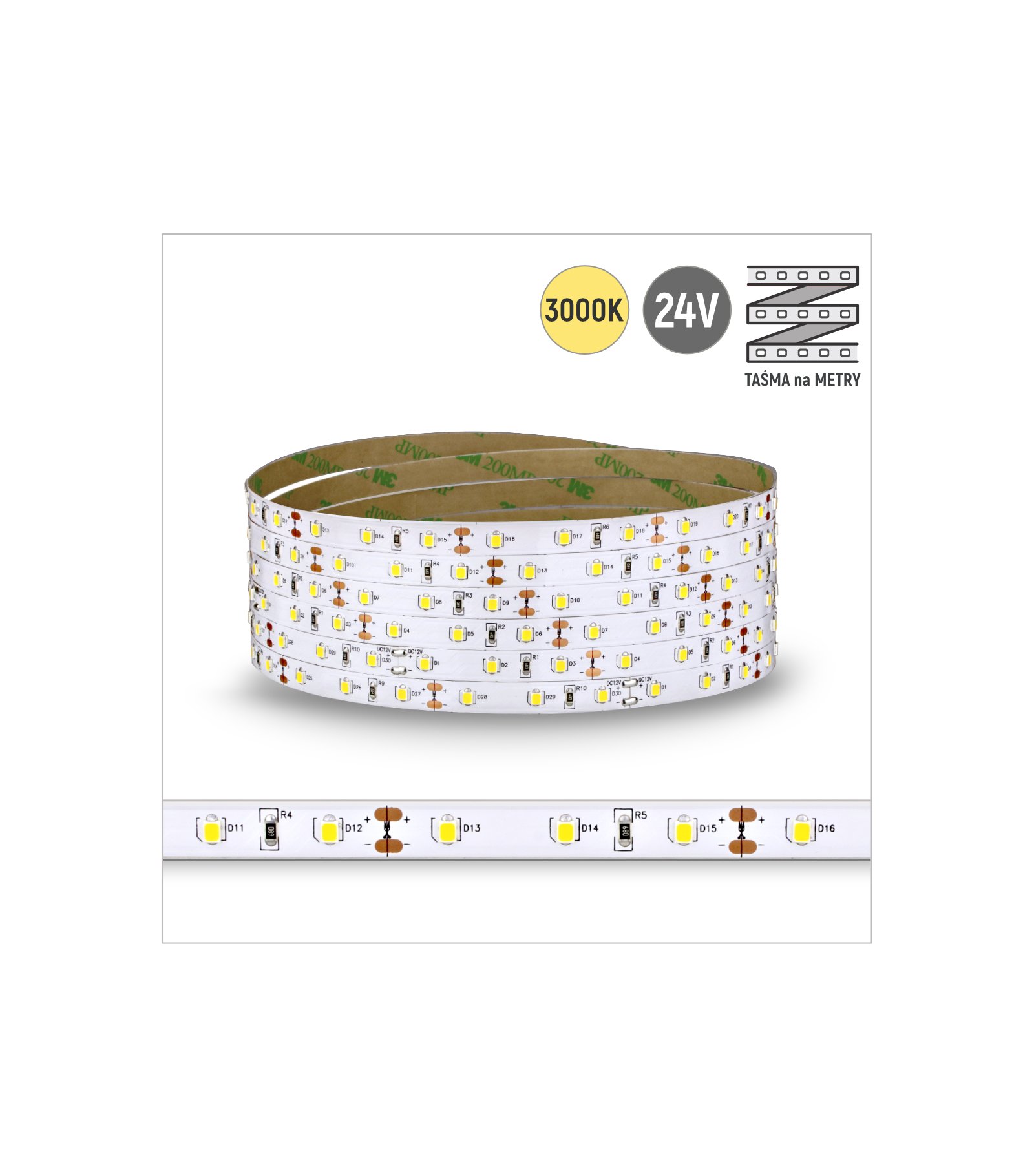 Stosujemy podwójne PCB, dzięki czemu taśma osiąga lepsze parametry pracy. Ilość zastosowanej miedzi (2 uncje) sprawia, że taśma nie będzie gasnąć i ma długą żywotność (w taśmach słabej jakości, często gasną 2-3 moduły, a później systematycznie wypalają się kolejne fragmenty taśmy).