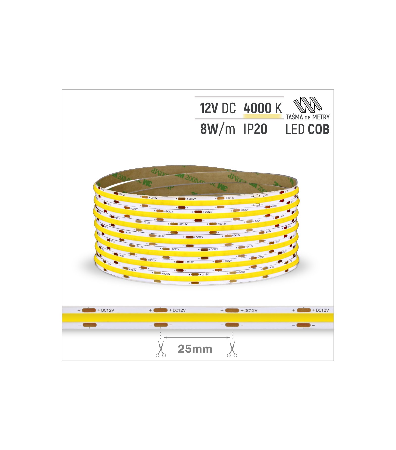 ✅ Profesjonalna taśma typu COB, posiadająca 320 diod na metrze. Świeci jednolitą linią światła, bez widocznych punktów !