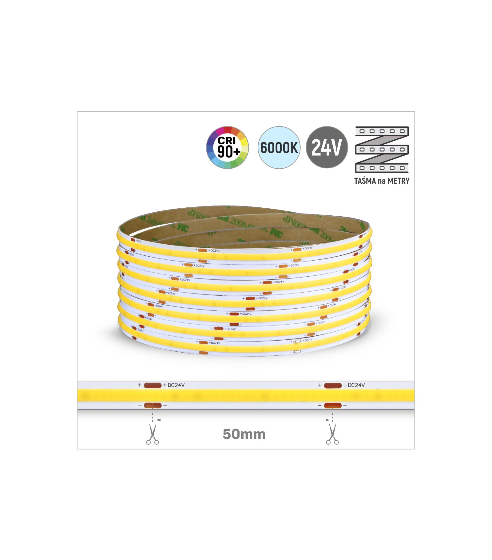 TAŚMA ROL. COB 480LED/MB IP20 6000K 9W/mb 24V/DC ROL.30M