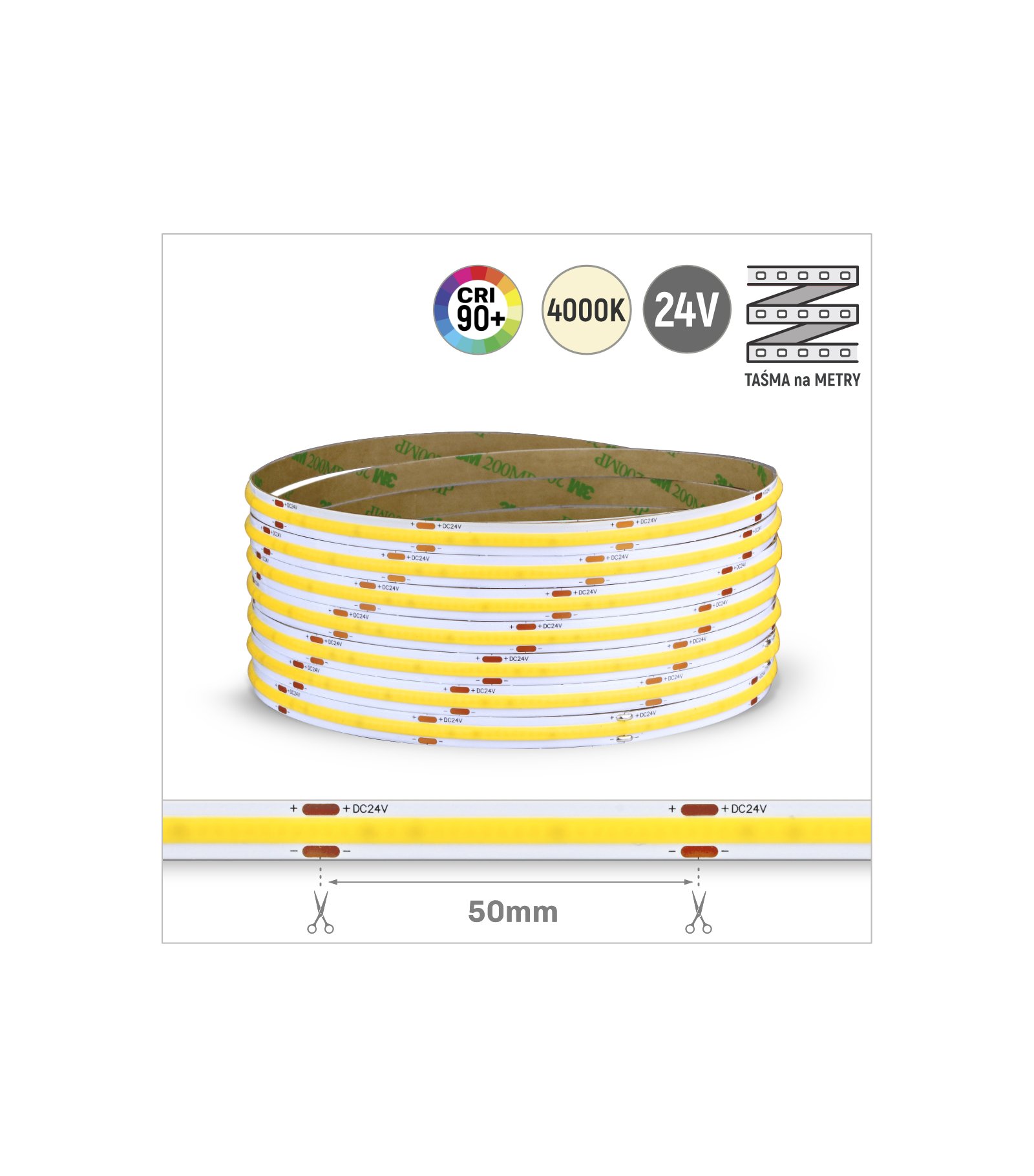 Nowy TAŚMA ROL. COB 480LED/MB IP20 4000K 15W/mb 24V/DC ROL.30M