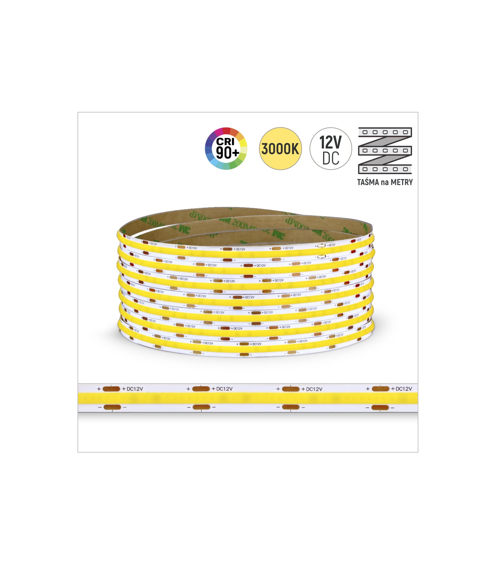 Nowy TAŚMA ROL. COB 480LED/MB IP20 3000K 15W/mb 12V/DC ROL.30M