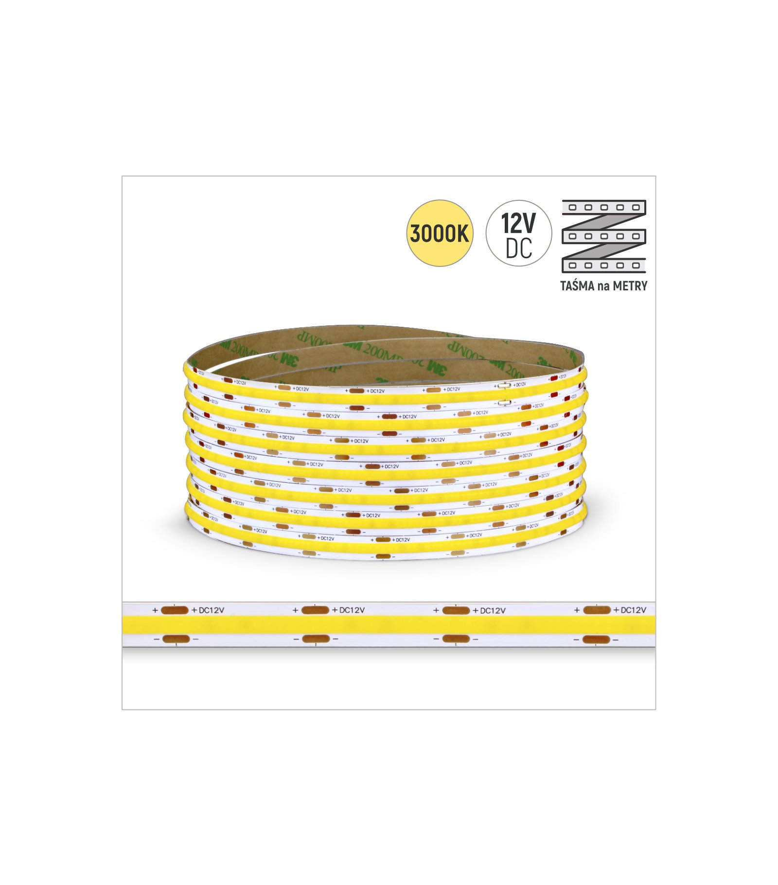 Nowy TAŚMA ROL. COB 480LED/MB IP20 3000K 5W/mb 12V/DC ROL.30M
