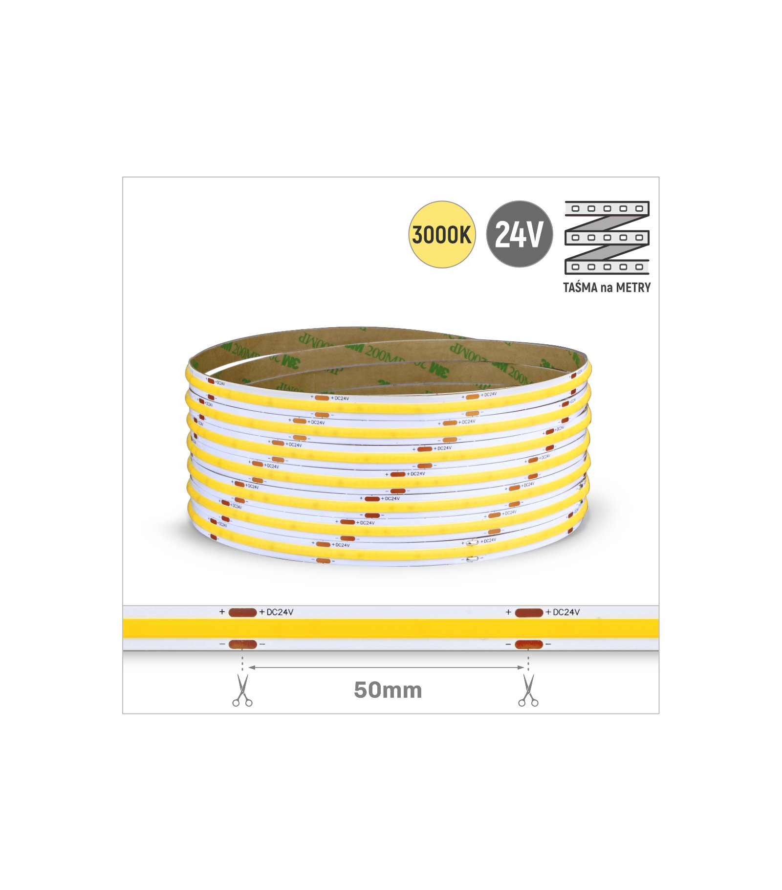 Nowy TAŚMA ROL. COB 320LED/MB IP20 3000K 6W/mb 24V/DC ROL.30M