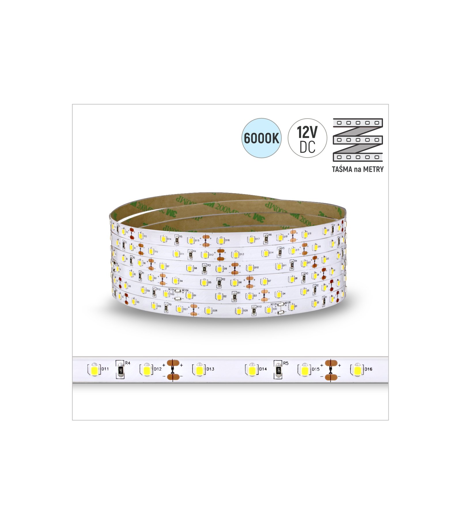 TAŚMA ROL.60LED 12V/DC 2835 IP20 6000K 6W/mb 10-12LM