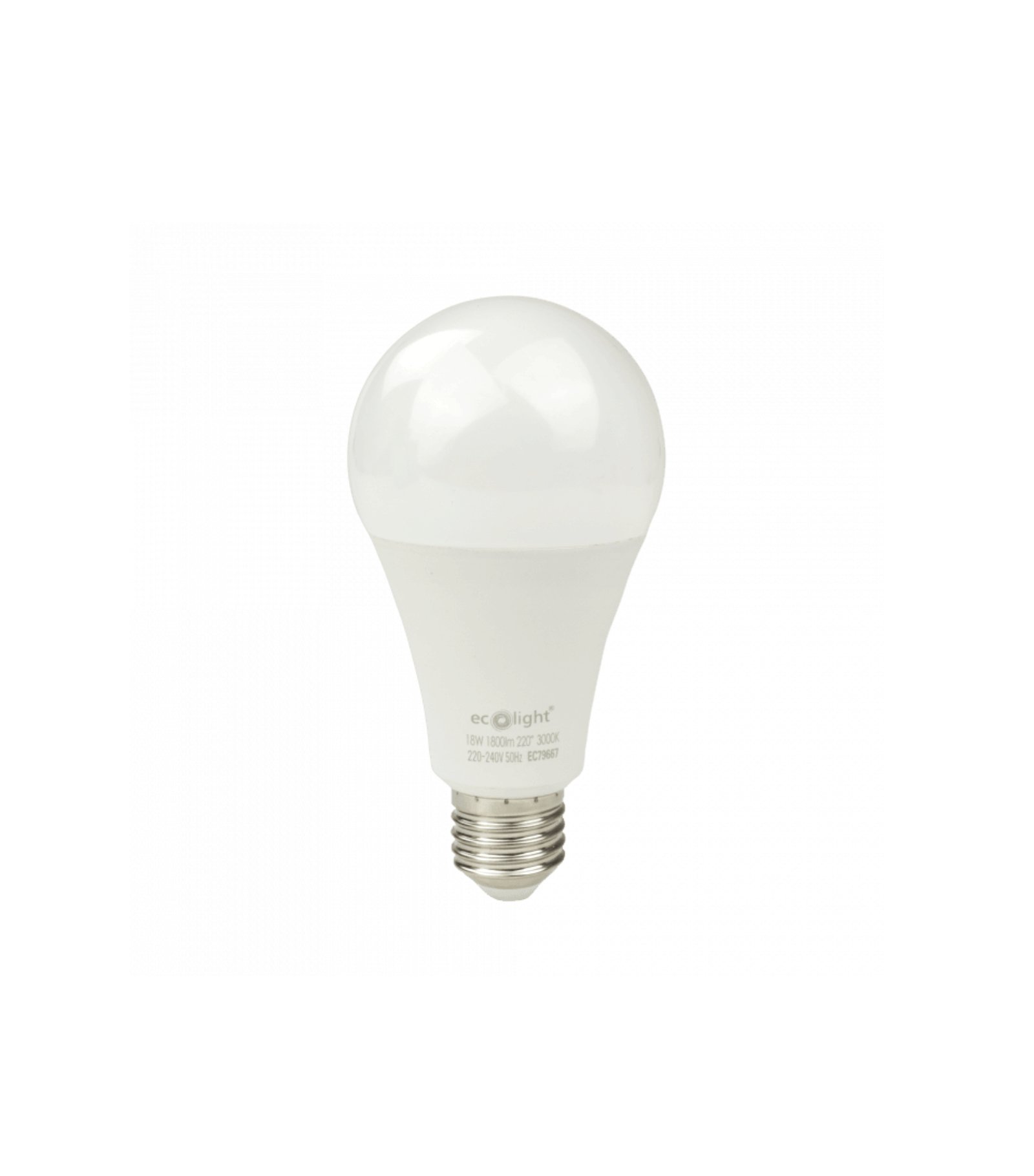 Żarówka LED Eco-Light A60 Classic o mocy 18W to nowoczesne i energooszczędne źródło światła, które dzięki uniwersalnemu gwintowi E27 sprawdzi się w wielu typach opraw oświetleniowych, takich jak lampy sufitowe, kinkiety czy lampki stołowe. Emituje przyjemne, ciepłe światło o temperaturze barwowej 3000K, tworząc przytulną atmosferę w pomieszczeniach mieszkalnych oraz komercyjnych.